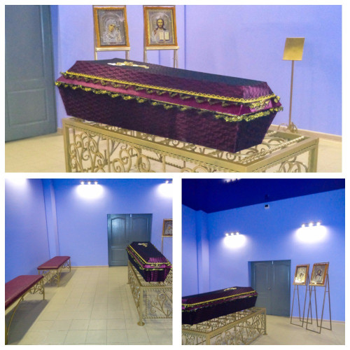 ООО “Тамбовская ритуальная компания” предоставляет траурный зал для прощания вместимостью до 200 человек, который оборудован всем необходимым: постамент для гроба, стойка для портрета усопшего, лампады, иконы. Зал можно дополнительно украсить траурной флористикой от нашей компании.